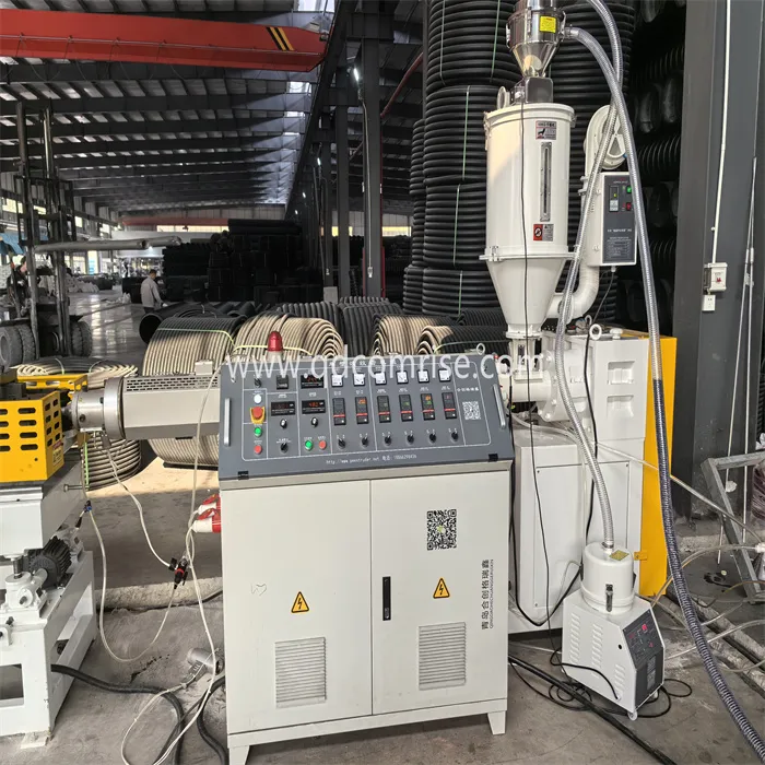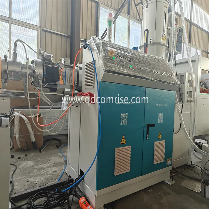 De extruder smelt het polymeer en dwingt het door de matrijs om een gladde pijp te vormen.